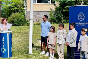 Lucas Voigt, Dante Sanguiliano Pagliero, Thiago Álvarez Fantone, Stefano Álvarez Fantone, and Felix Ekelöf pledged to defend and honor our national flag, accompanied by their families and the Argentine community.